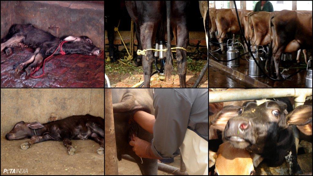 To make matters worse, the dairy industry depends on systematically inhumane operations. Farmers repeatedly hold down, rape, and impregnate cows and buffaloes, who have no choice but to endure the trauma of artificial insemination. Dairy farmers also commonly inject cattle with oxytocin to force them to produce more milk, causing pain similar to labour in the animals. Shortly after the mother cows and buffaloes give birth, farmers typically snatch baby calves away from them. If the babies are female, they're often put on a milk replacer and will inherit their mother's misery of being treated like milk machines. If calves are male, a dairy farm will typically abandon them, leave them to starve, or sell them for beef.