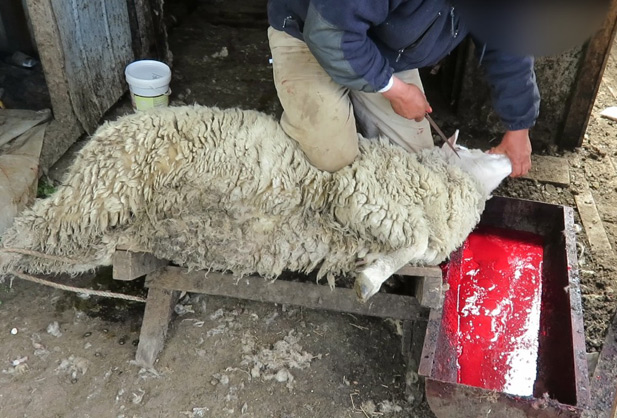 Workers stabbed fully conscious sheep in the neck. The sheep kicked and struggled as they bled to death. One worker took out his mobile phone while a sheep – pinned down under his knee – fought for her life.