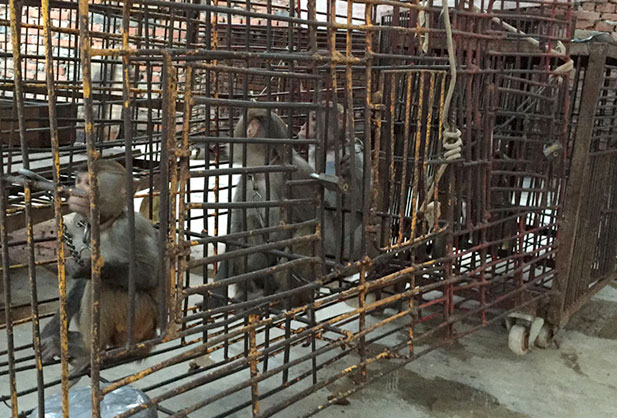 Monkeys Chained by the Neck, Yanked Around and Confined to Small Cages