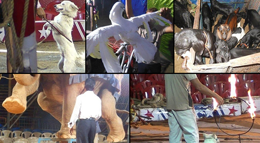 Inspections by the Animal Welfare Board of India have revealed that animals used in Indian circuses are subjected to chronic confinement, physical abuse, and psychological torment. Whips and other weapons are used to inflict pain on them and beat them into submission. Animals perform frightening, confusing tricks, such as jumping through rings of fire, not because they want to but out of fear of violent punishment.